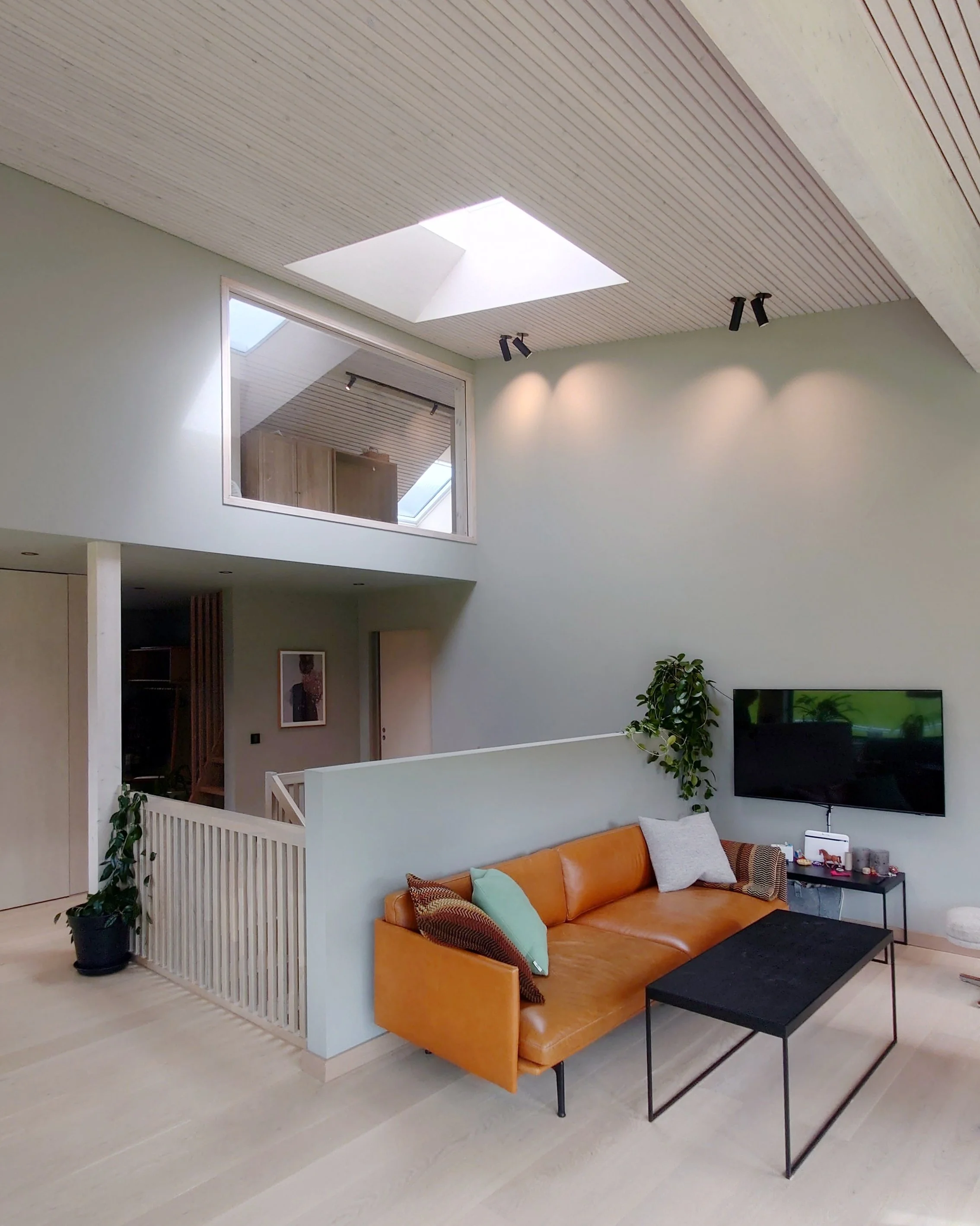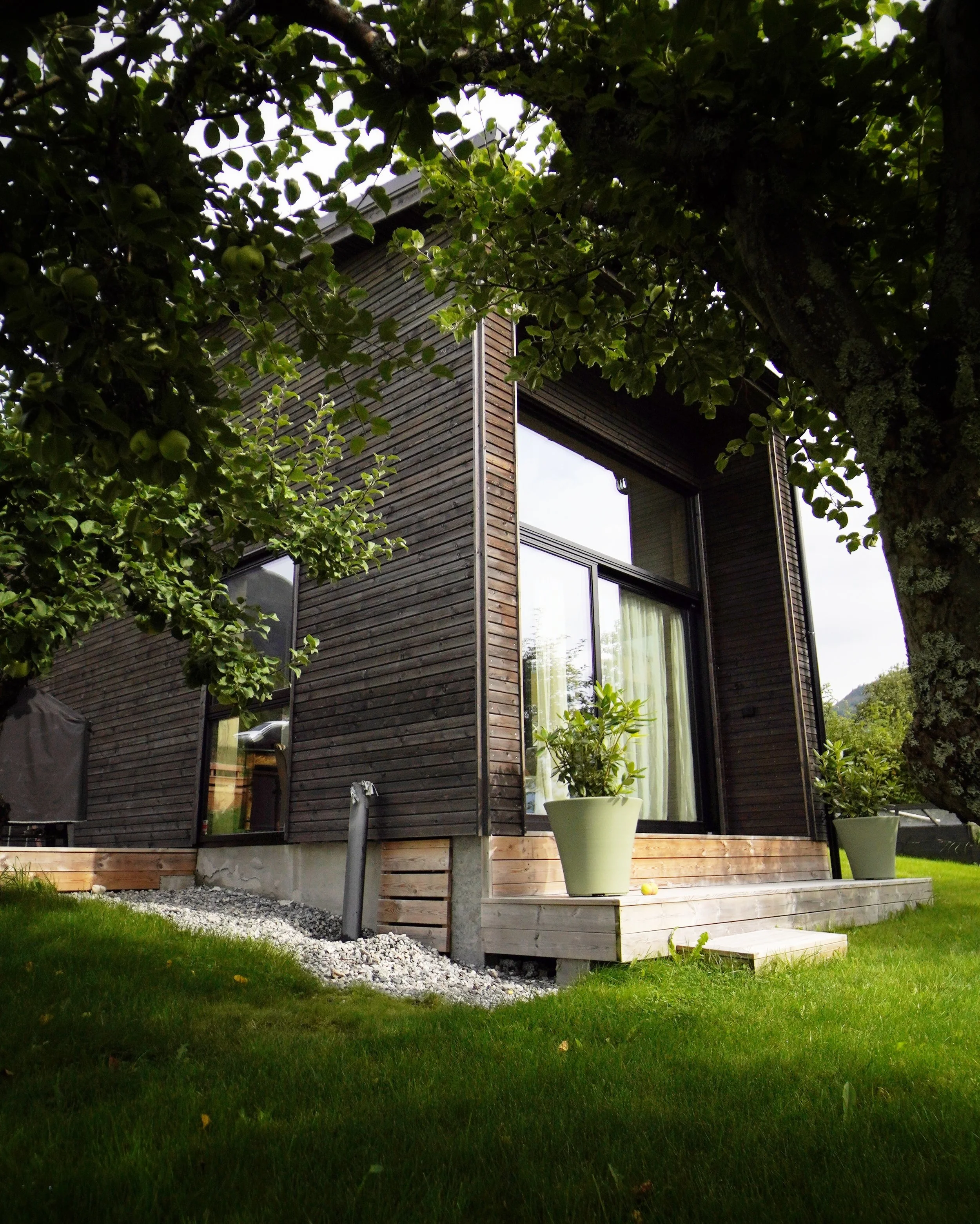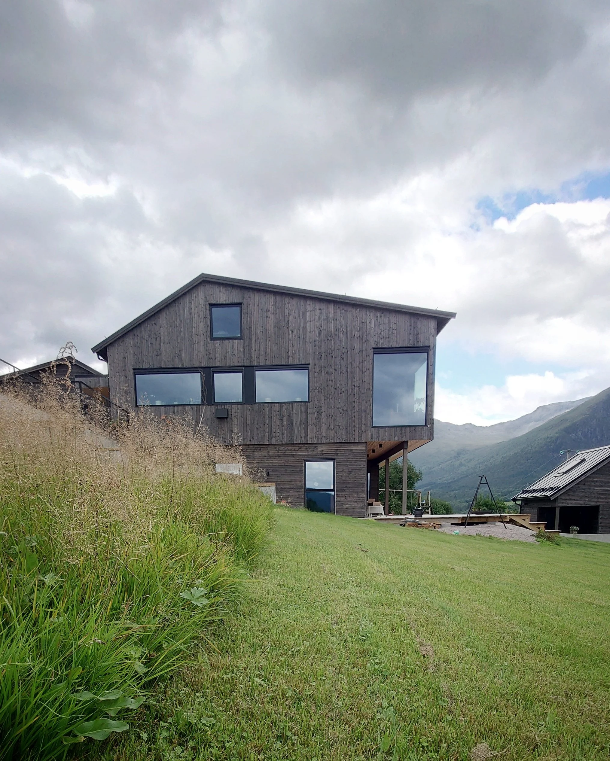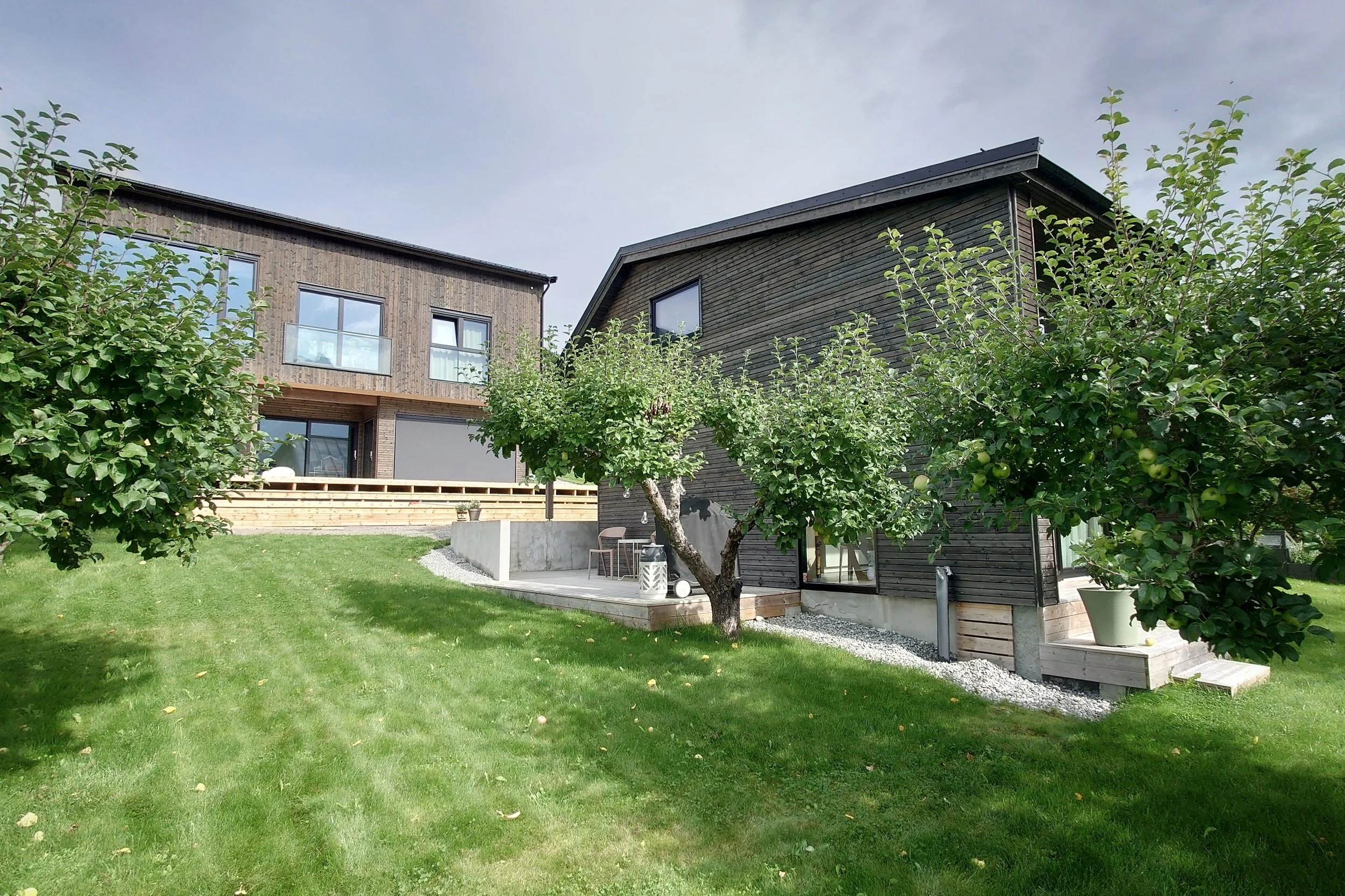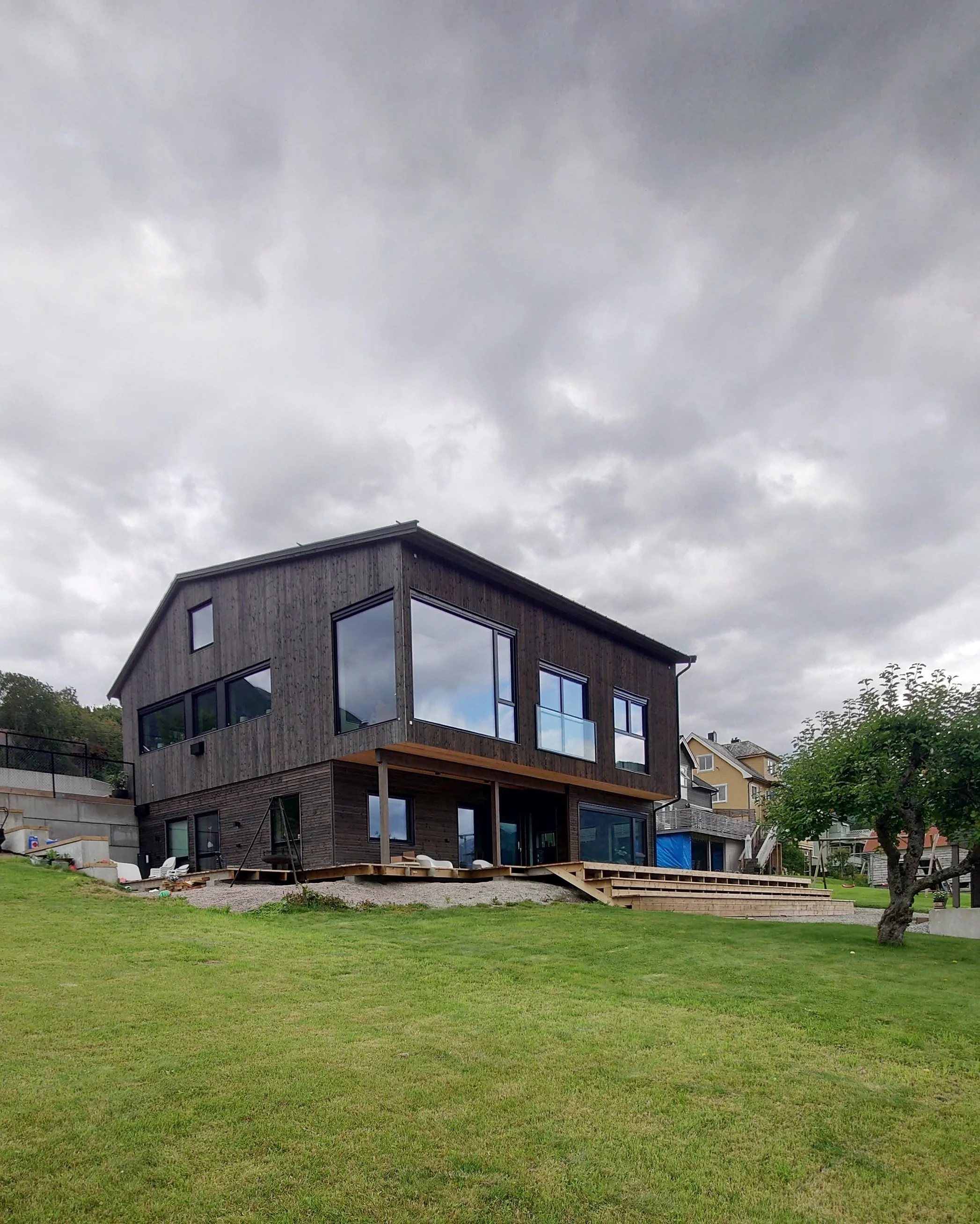 Eneboligen erstattet et eldre og nedslitt hus. Utover å lage en god bolig basert på ønskene til kunde, ble det her jobbet med å fange opp høydeforskjellene på en god måte, og å bevare mest mulig av kvalitetene i den eksisterende hagen.