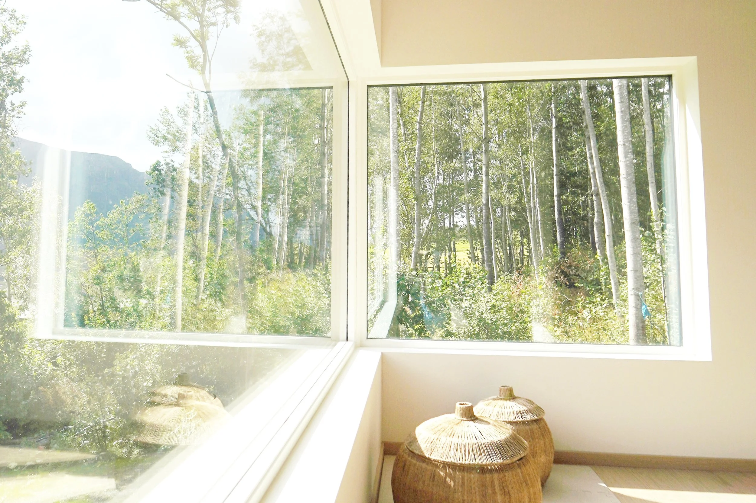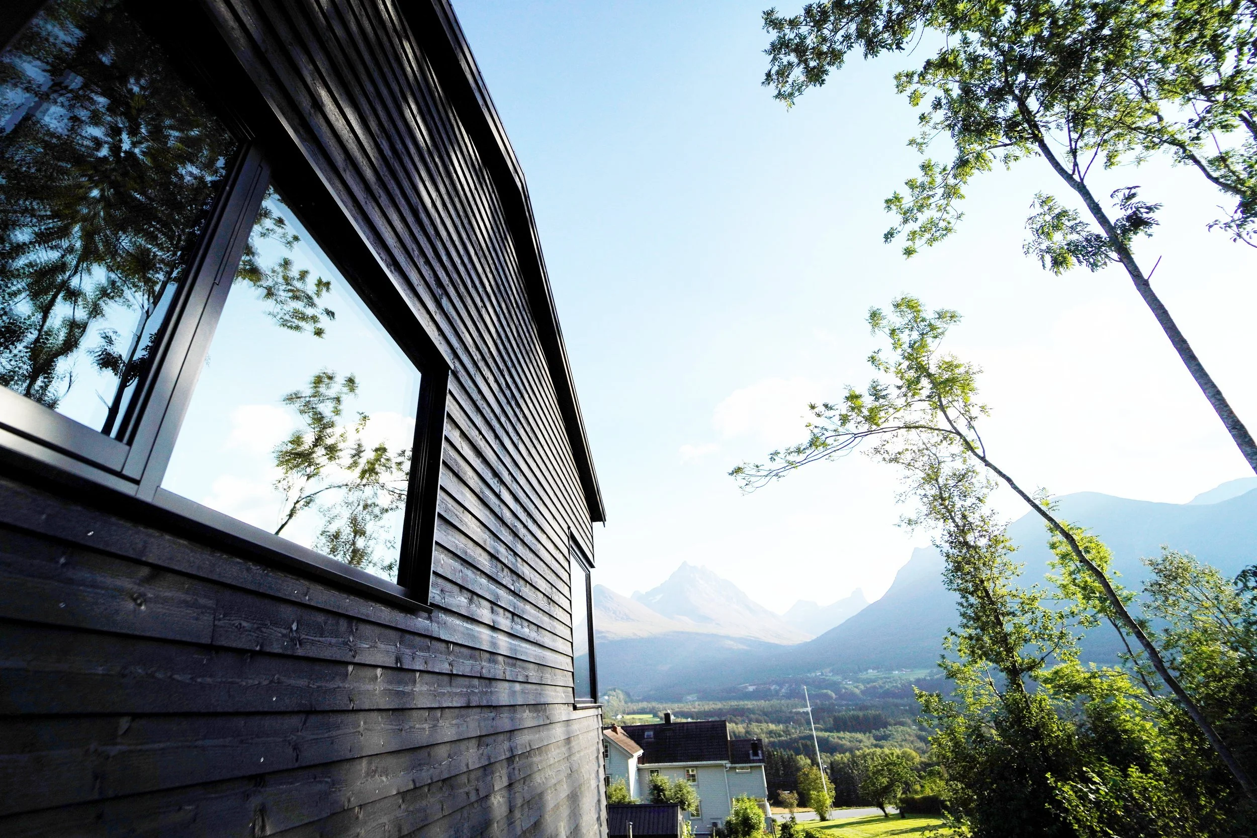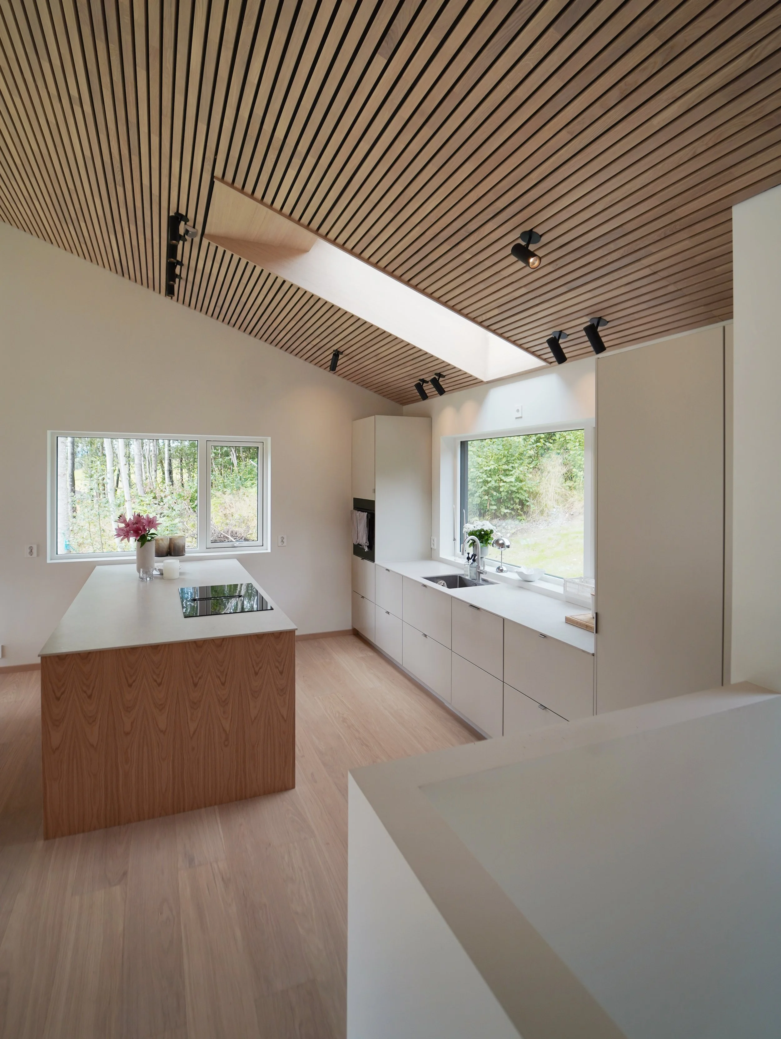 På langsidene ble det lagt inn forskyvninger for at større deler av huset skulle få vindu mot øst og vest, og for å skape skjermede utesoner.