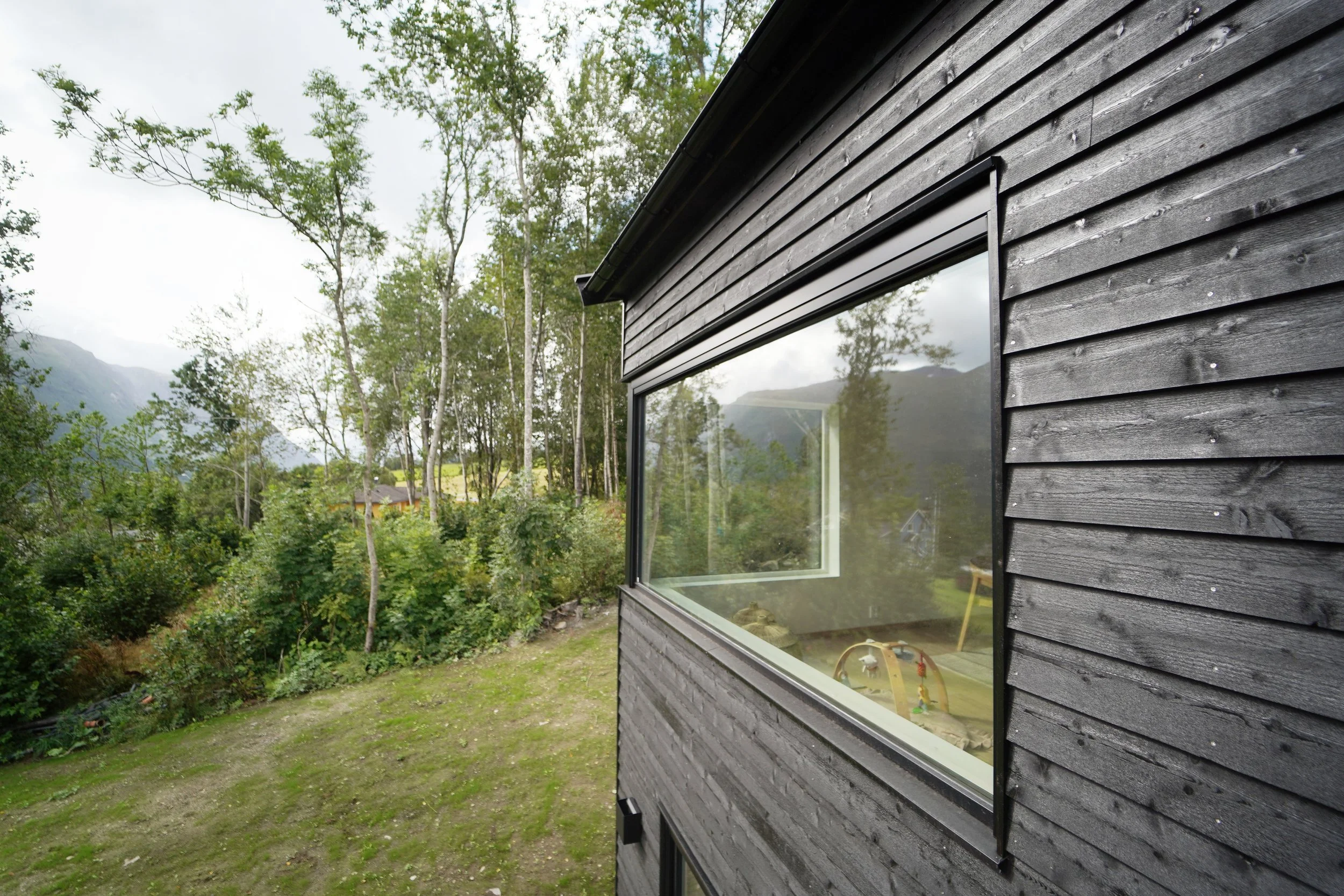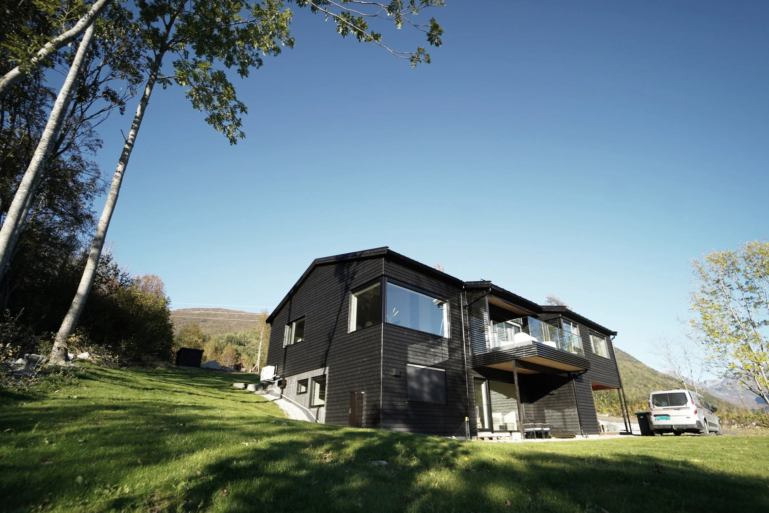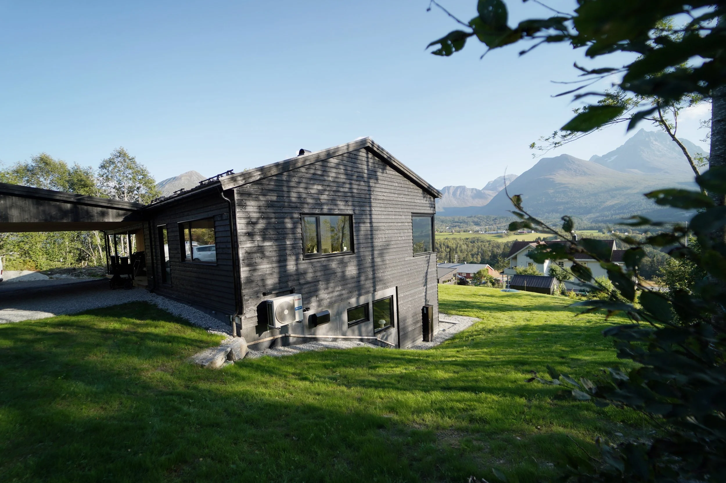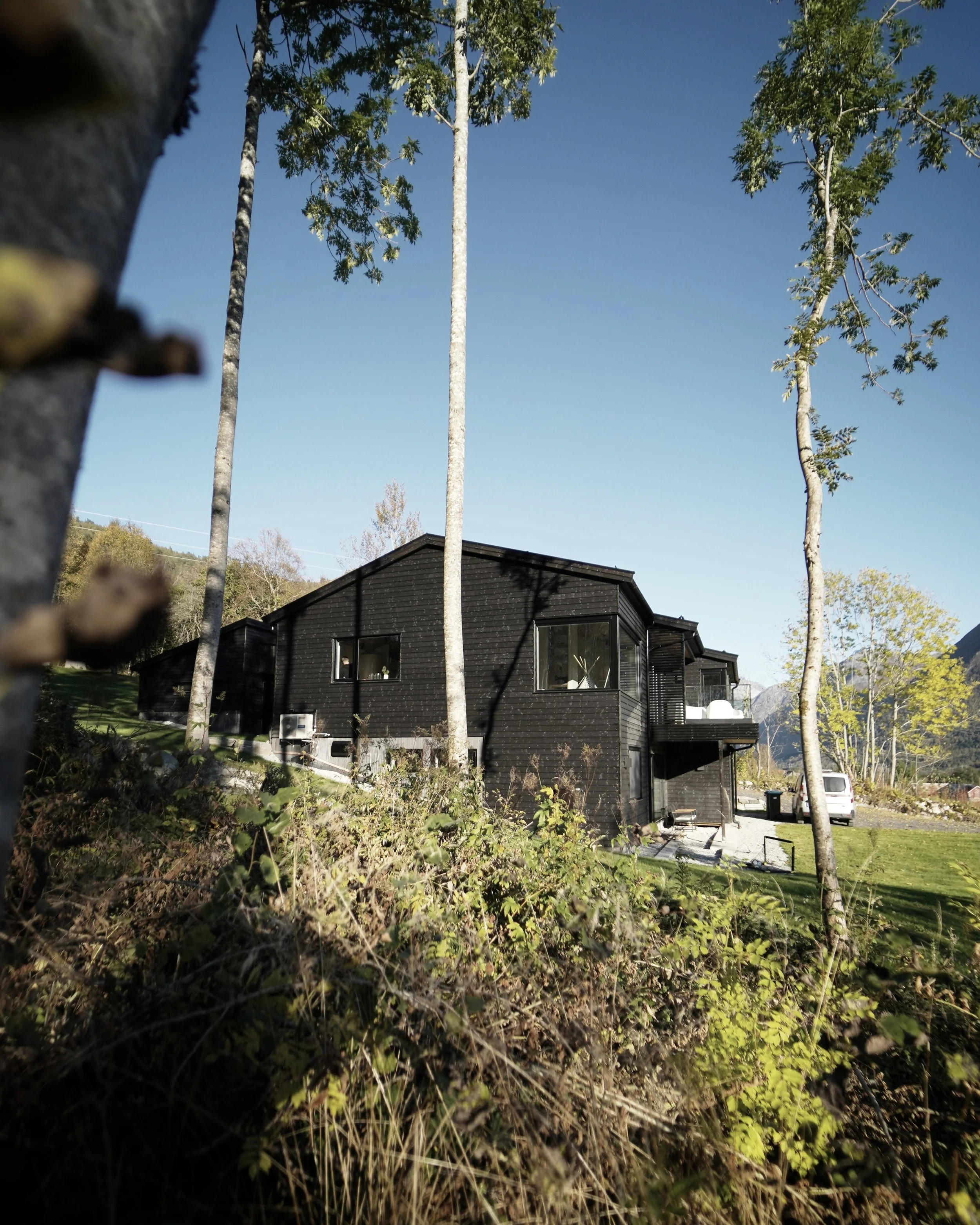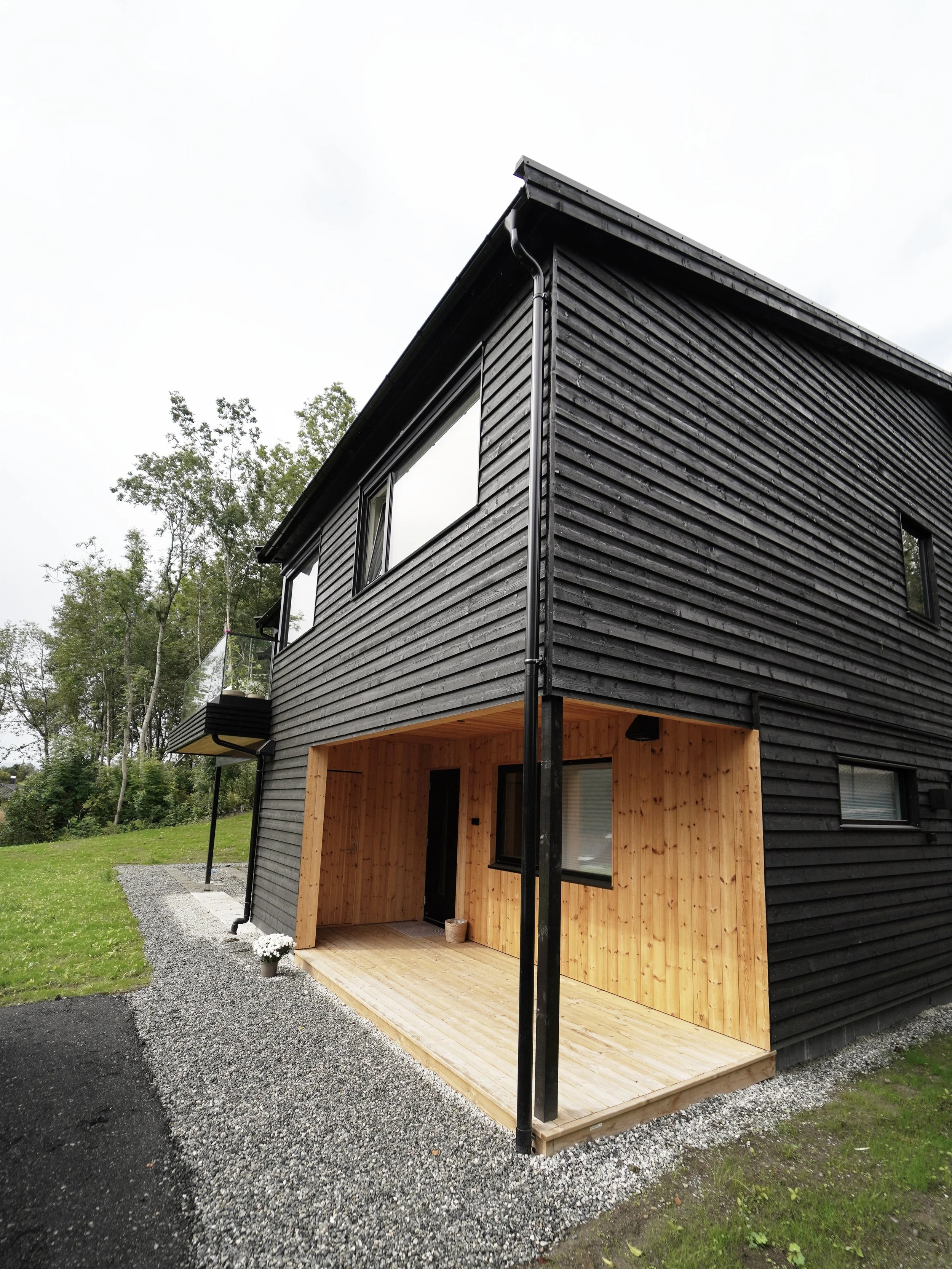 Småbarnsfamilien ønsket seg en ny enebolig med utleiedel. Å oppnå adskilte og skjermede inngangspartier og uteområder ble derfor et styrende moment fra start. Boligens plassering på tomta er gjort ut fra mange hensyn som solforhold, helning, hage og innkjøring.