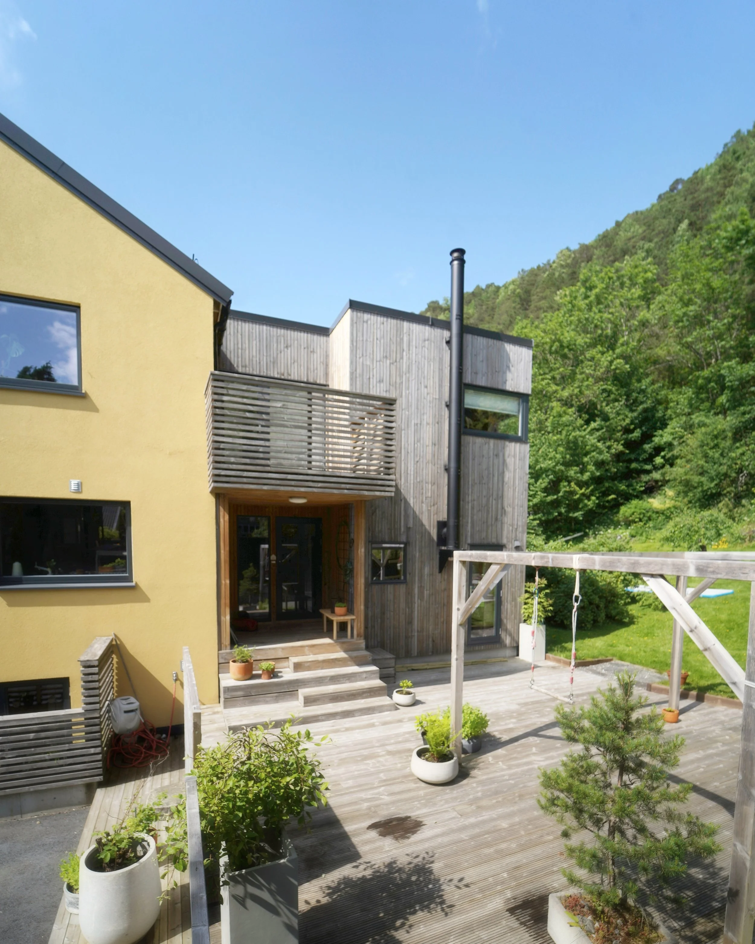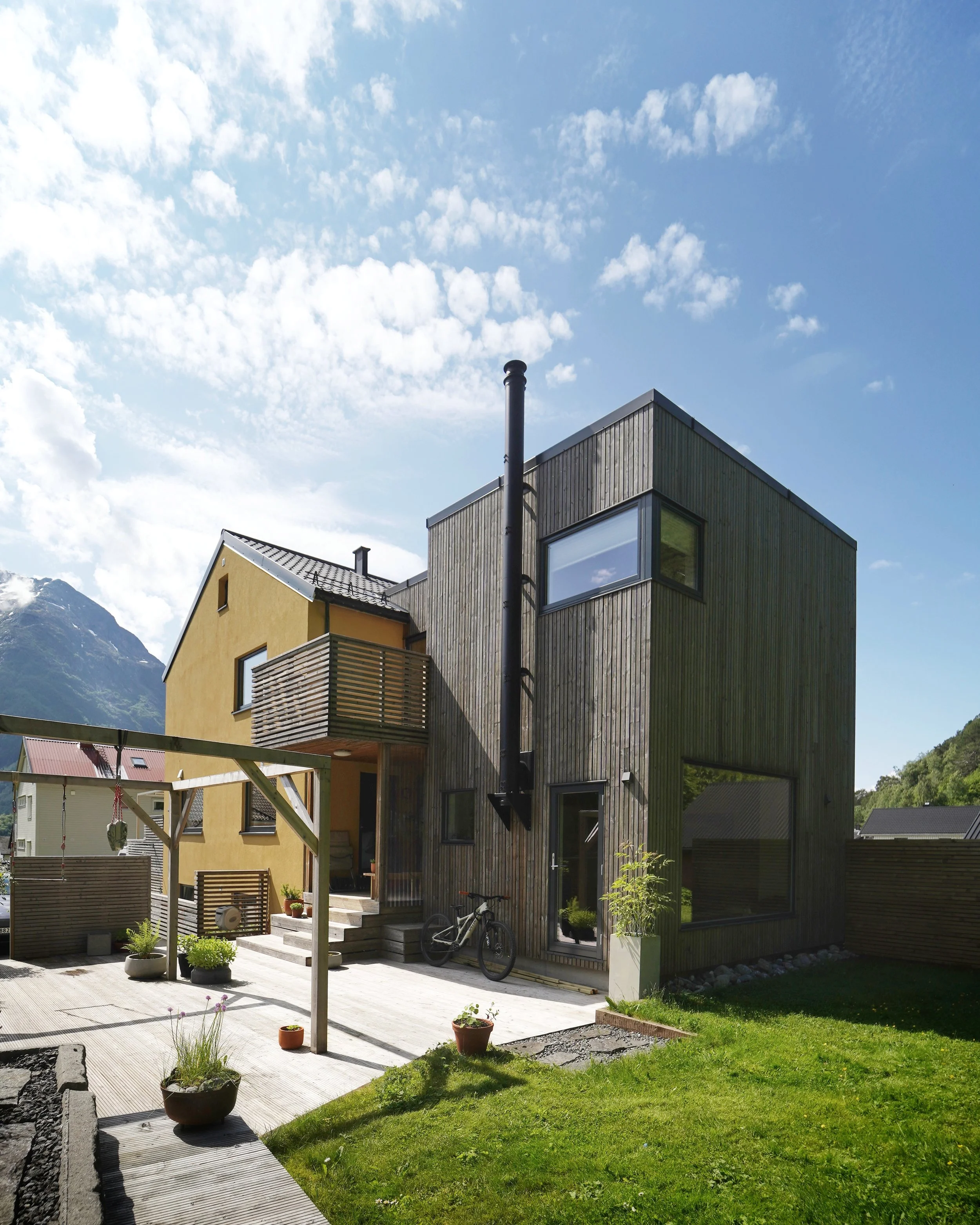 Eierne av boligen ønsket seg ekstra soverom, bad og større stueareal. Plasseringen av tilbygget bevarte solvendt hage og knyttet det nye arealet logisk sammen med det eksisterende.